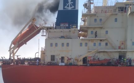 Brega – Lieutenant Colonel Mahmoud Al-Atyoush, Assistant Security Director of the Brega Seaport, confirmed that a fire broke out on one of the vessels docked inside the port in the early hours of Wednesday morning.