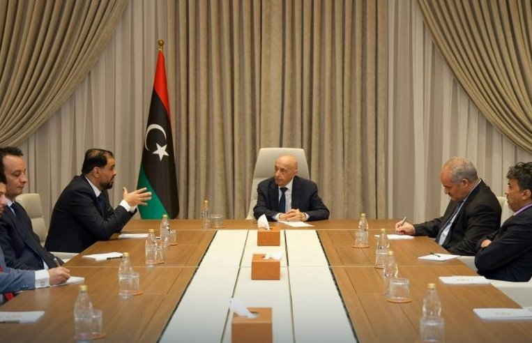 Benghazi – Prime Minister Osama Hammad and Speaker of the House of Representatives, Aguila Saleh, held an extensive meeting on Wednesday with the Governor of the Central Bank of Libya, Naji Issa, and his deputy, Mari Al-Barasi. The meeting, also attended by the Director of the Libyan Development and Reconstruction Fund, Belqasim Haftar, focused on a number of priority financial and economic files aimed at addressing the nation’s economic challenges.