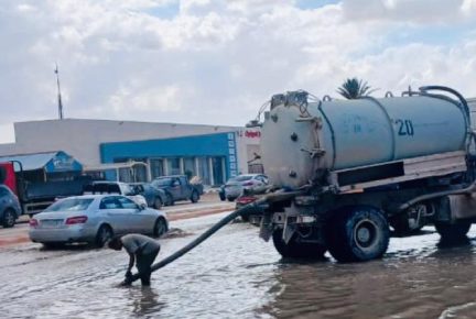 Sirte – Work continued on Sunday to clear and pump rainwater blockages in the city of Misrata, carried out by emergency teams from the Services Office of the Central Region’s Operation and Maintenance Department. These teams are working to remove water accumulations from main and secondary roads and in front of schools, in a move aimed at mitigating damage from recent rainfall and facilitating the movement of citizens.