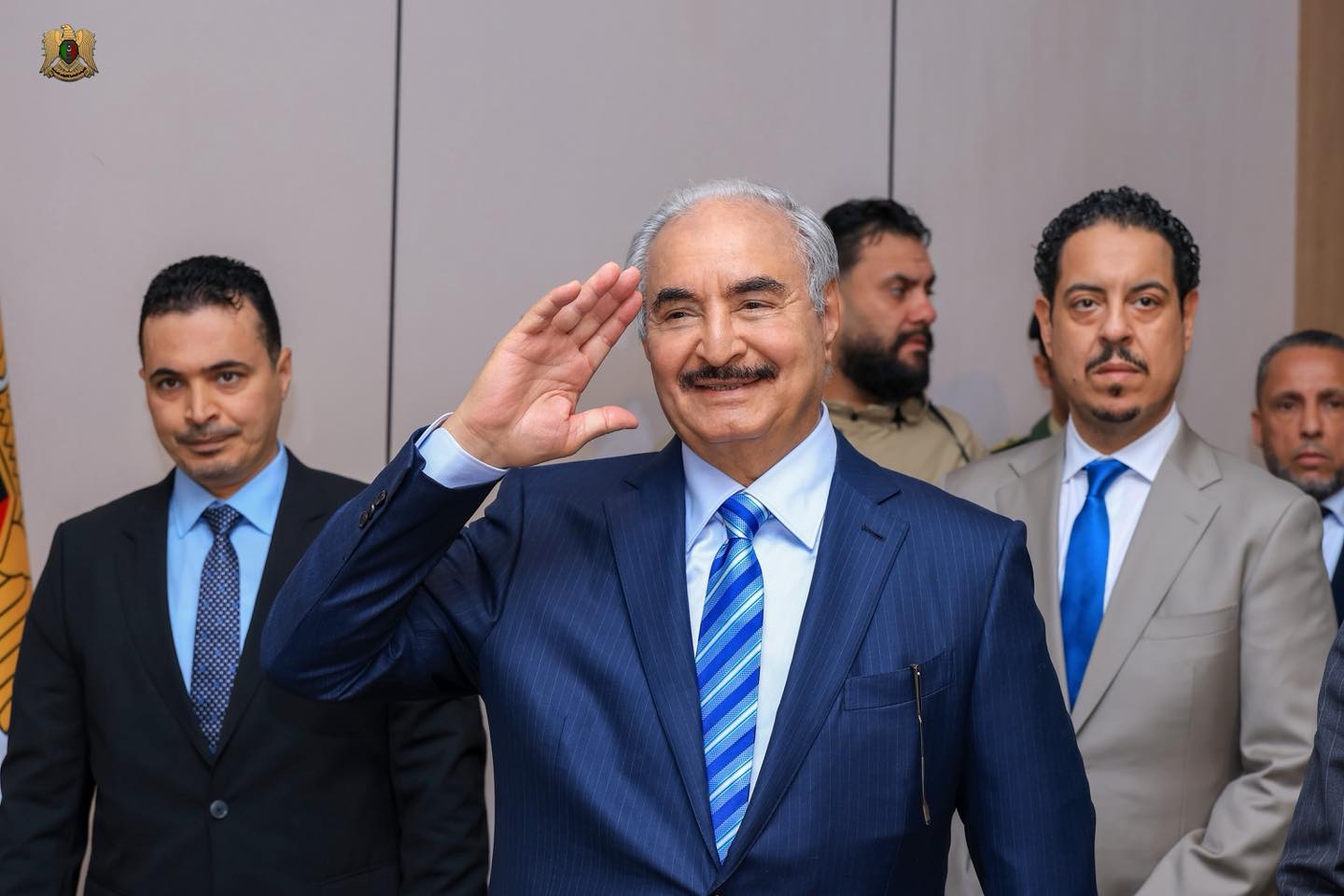 The Commander-in-Chief of the Armed Forces, Field Marshal Khalifa Haftar, met with a group of elites, activists, media professionals, academics, and jurists, in the presence of the Prime Minister of the Libyan Government, Dr. Osama Hammad, and the Chief of the General Staff, Lieutenant General Khalid Haftar.
