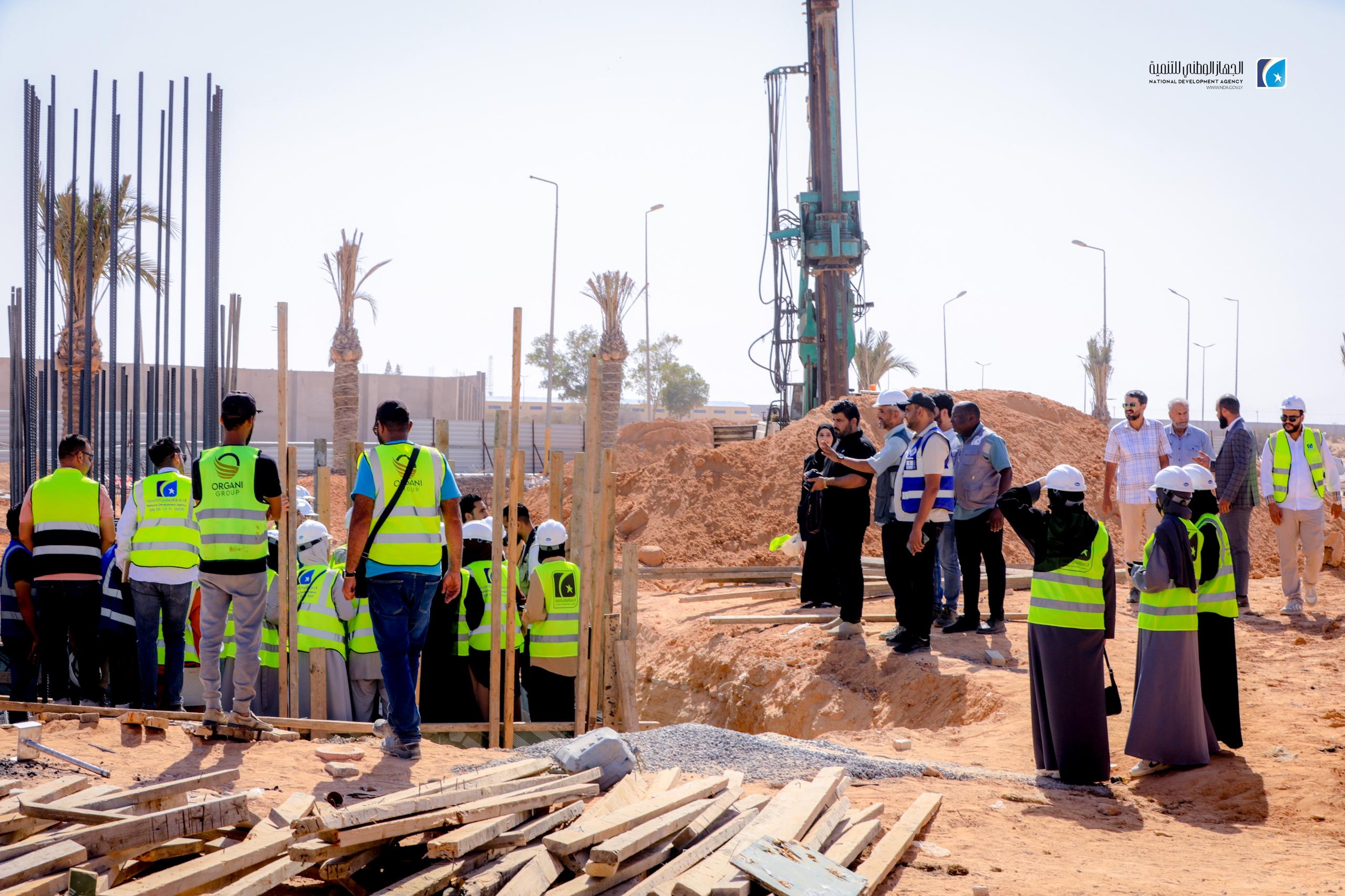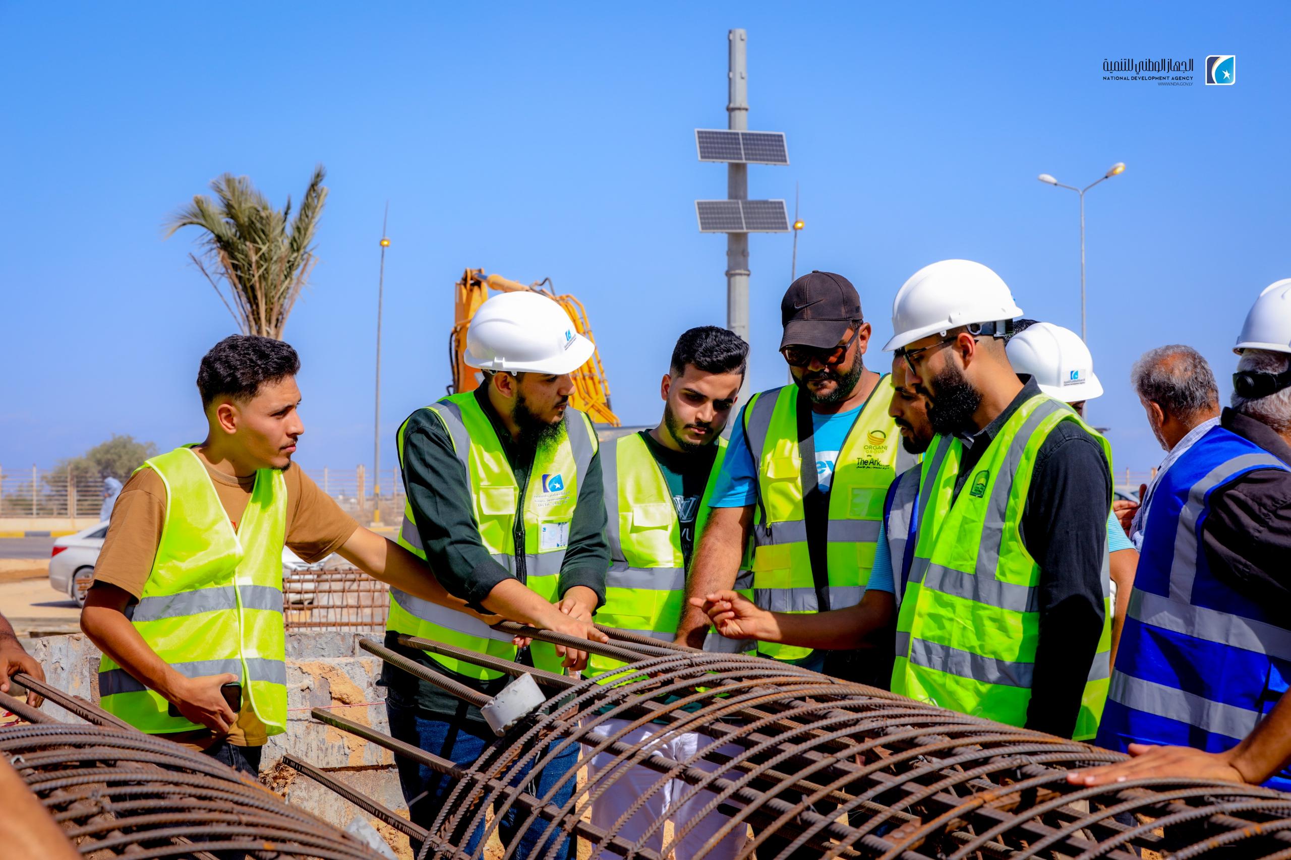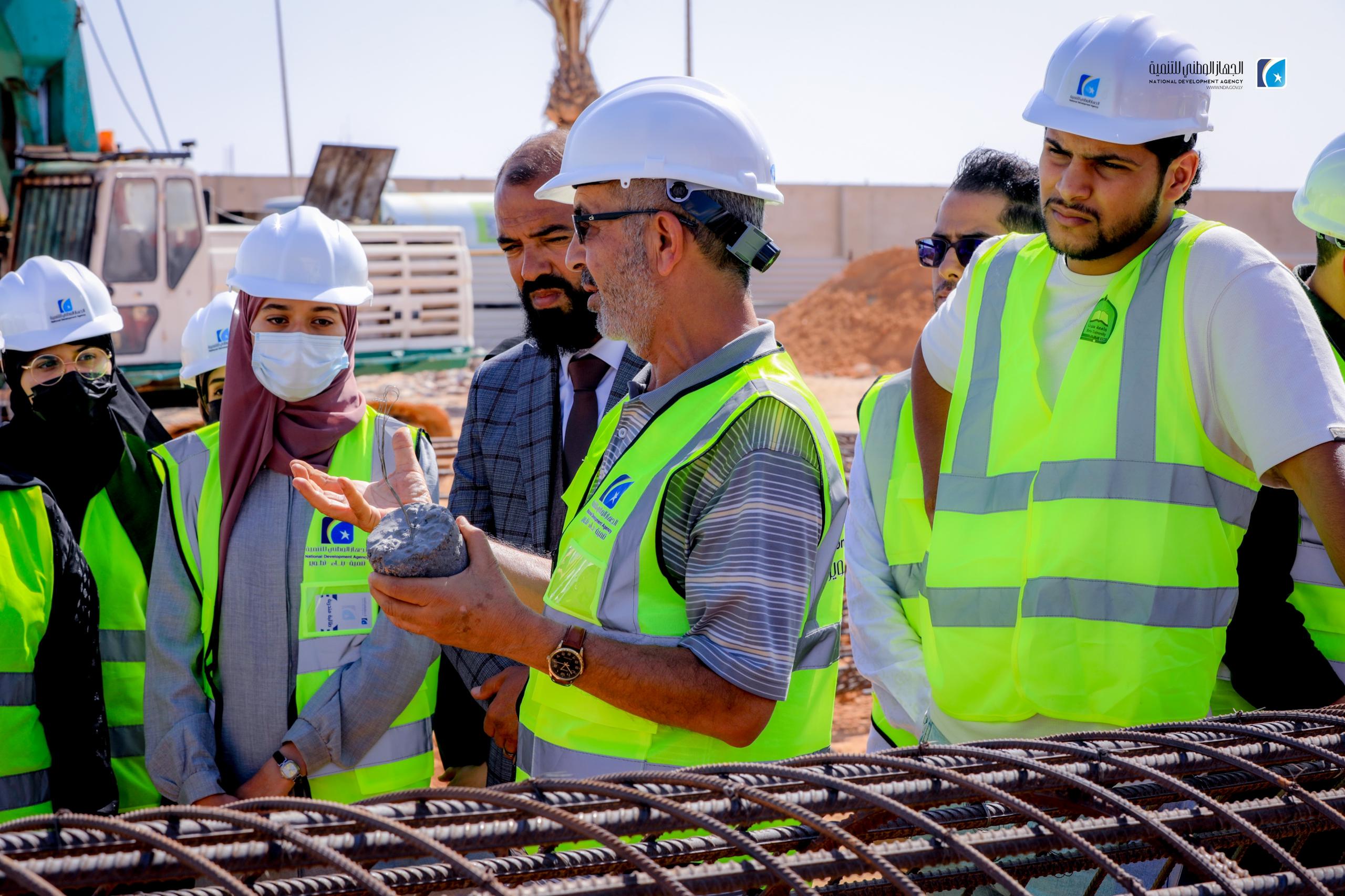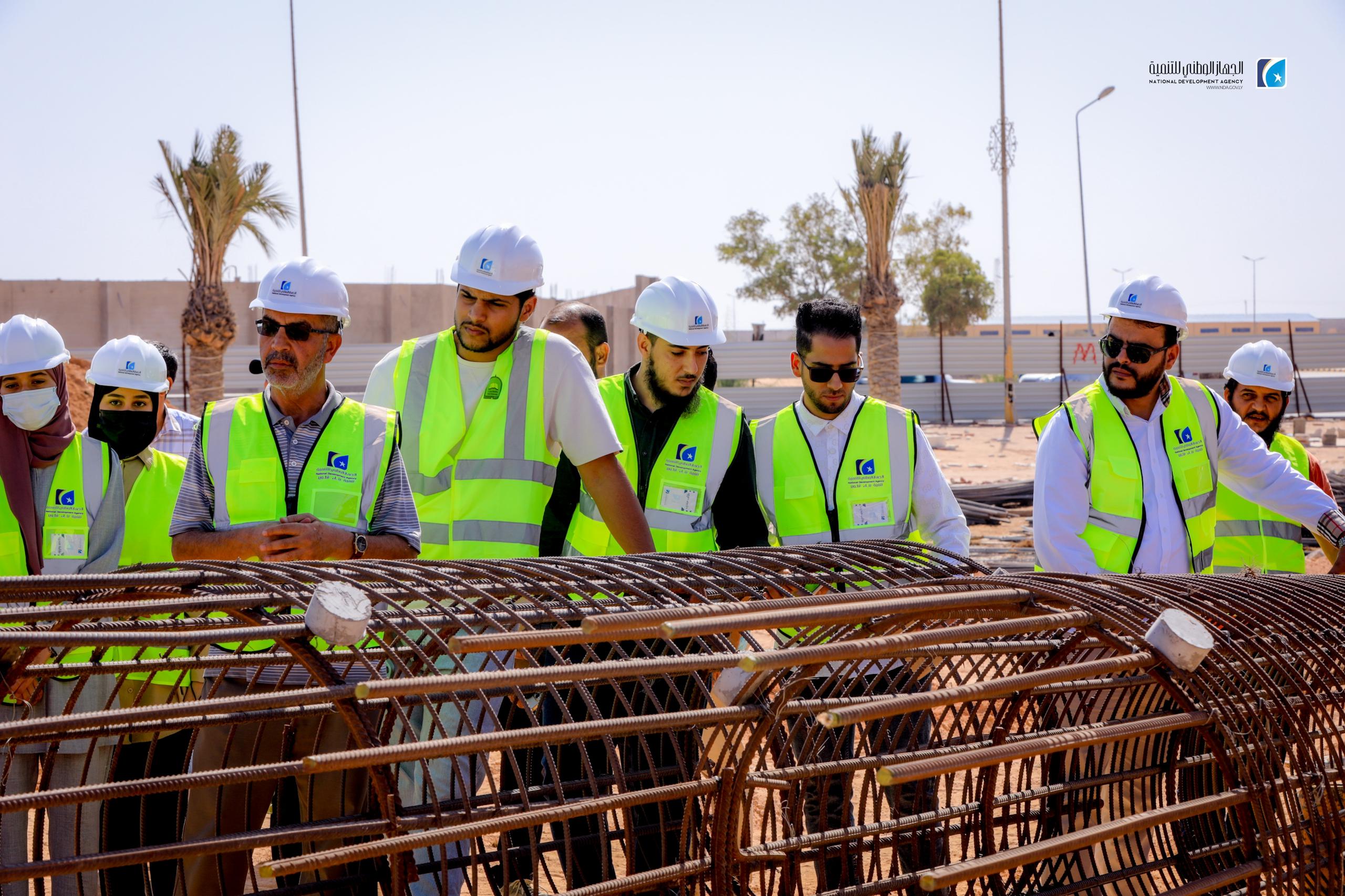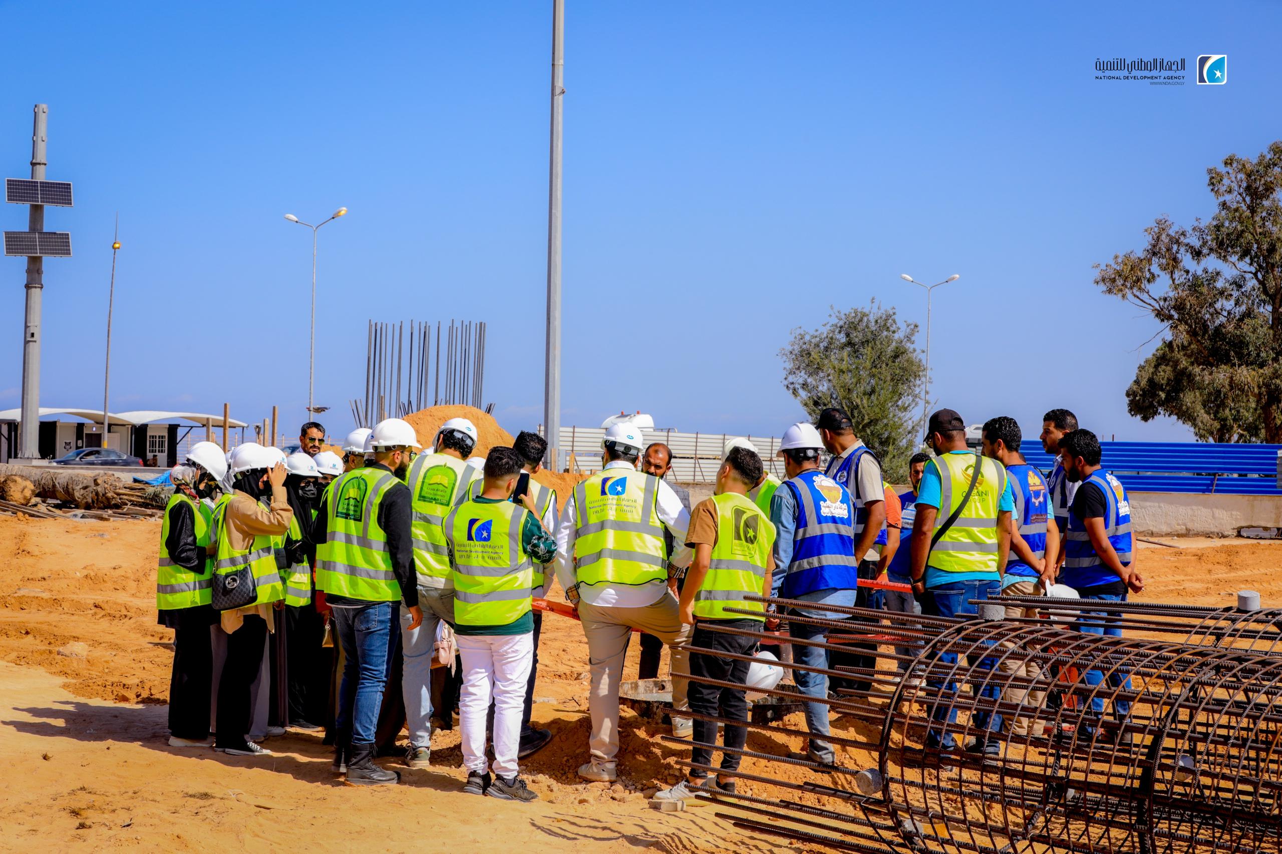 The National Development Agency (NDA), in partnership with the University of Sirte, has launched an initiative to train 23 civil engineering students from the university. The program includes guided visits to prominent infrastructure projects, including the concrete construction site of the Karama Bridge and the ongoing University Complex development.