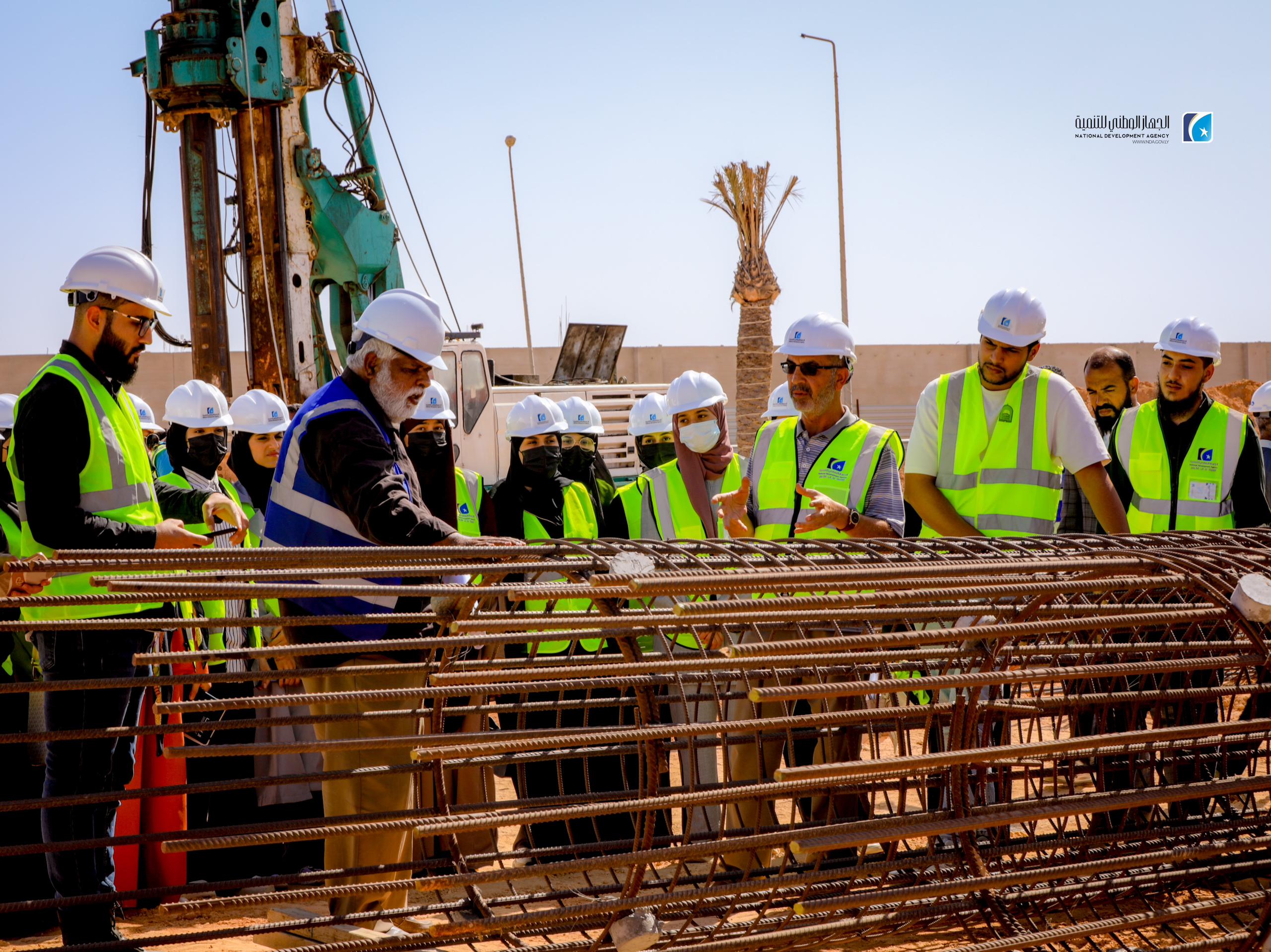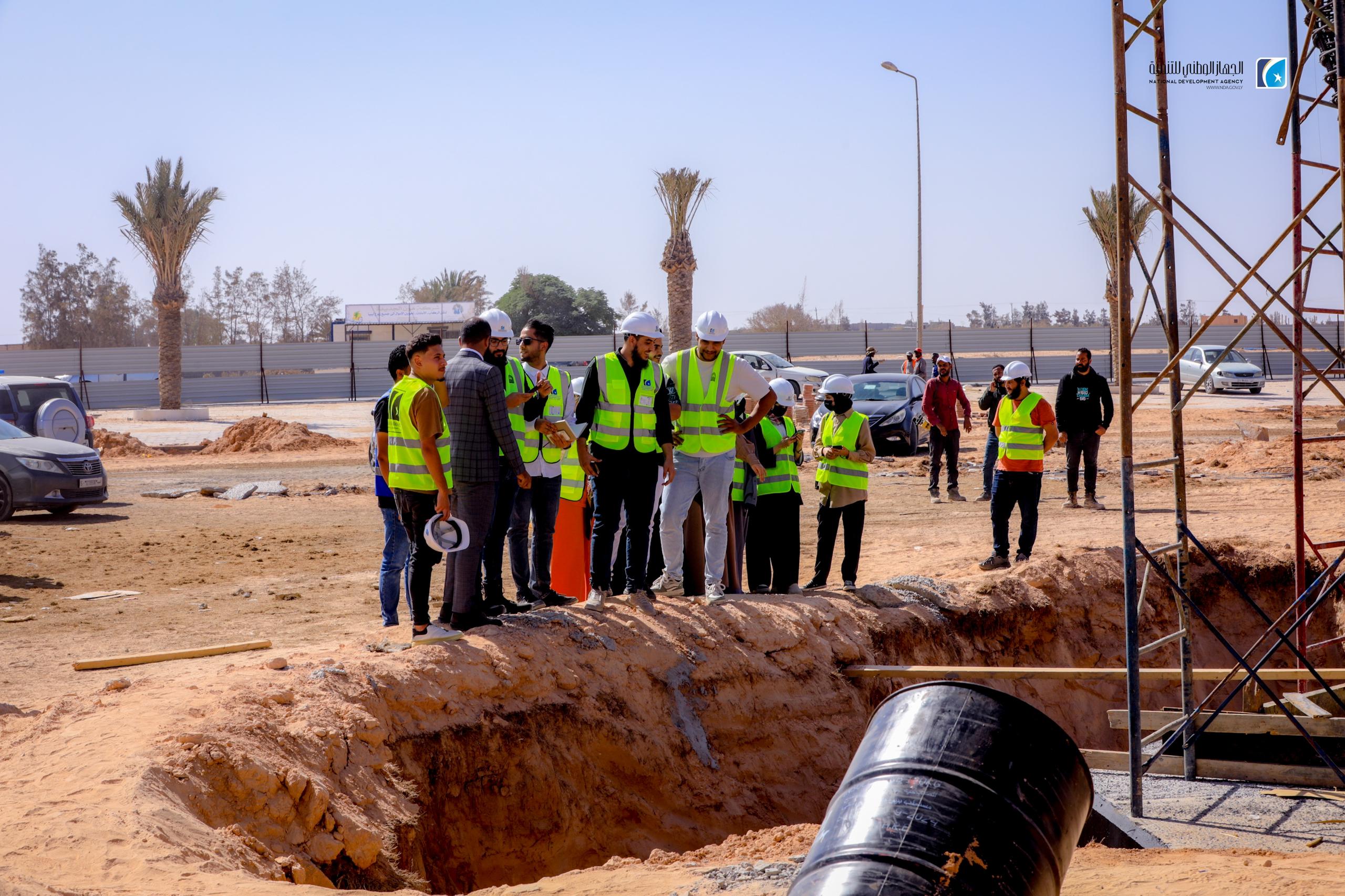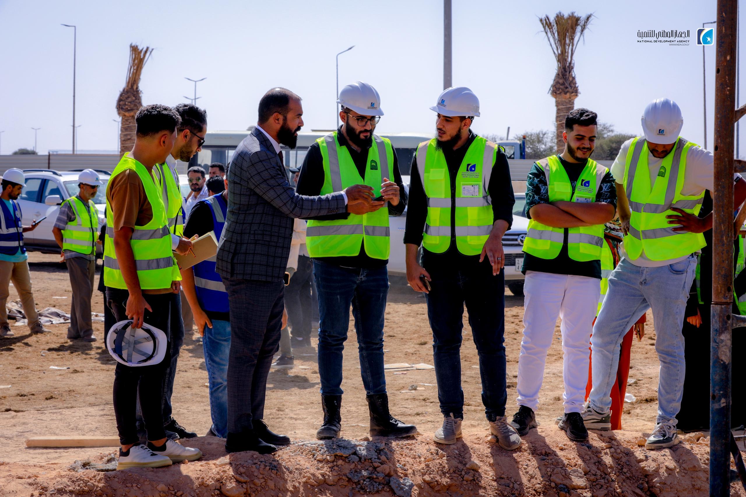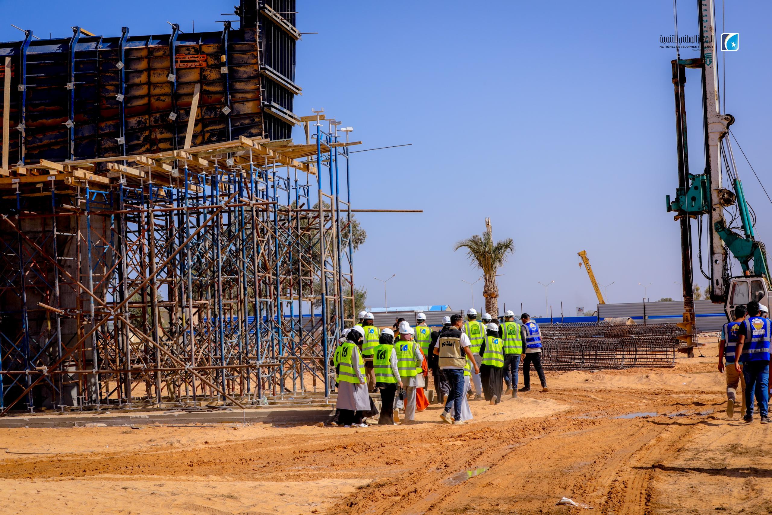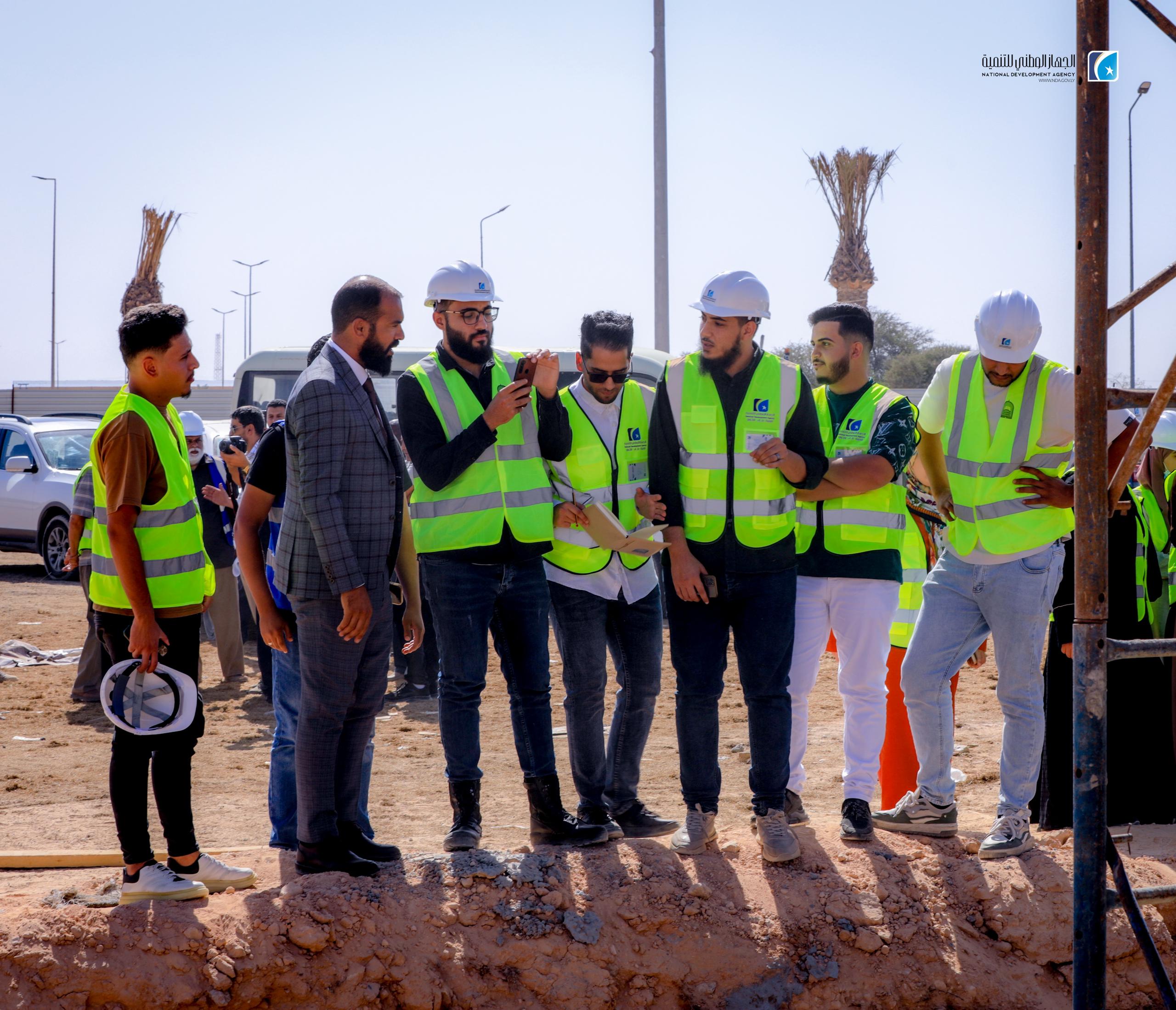 The National Development Agency (NDA), in partnership with the University of Sirte, has launched an initiative to train 23 civil engineering students from the university. The program includes guided visits to prominent infrastructure projects, including the concrete construction site of the Karama Bridge and the ongoing University Complex development.