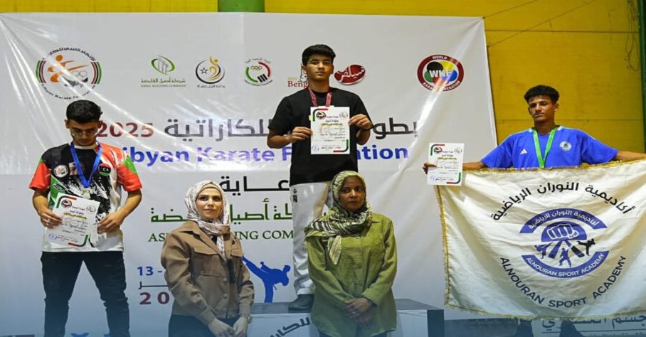 Benghazi – The Libyan champion “Nizar Qais” has returned to the spotlight after a years-long absence, winning first place in the junior under-70 kg category at the 2025 Libyan Clubs Karate Championship.