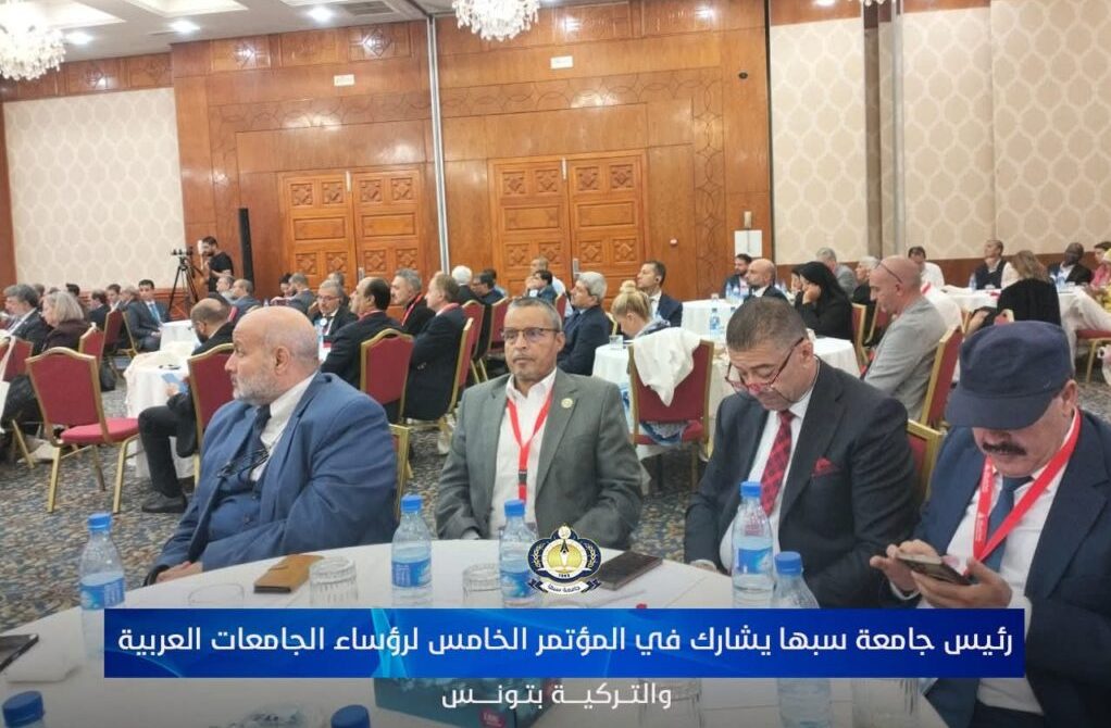 Tunis – The President of Sebha University, Dr. Masoud, and Mr. Mohamed Ahmed Mahrez, Director of the International Cooperation Office at the university, are participating in the fifth conference for presidents of Arab and Turkish universities, hosted by Tunis El Manar University on Thursday and Friday, October 10 and 11, 2025, in the Tunisian capital.