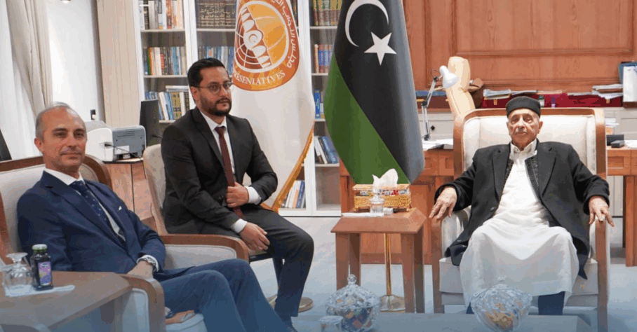 Al-Qubba – The President of the House of Representatives, Aguila Saleh, on Monday, discussed with the Italian Ambassador to Libya, Gianluca Alberini, the two countries’ efforts to consolidate bilateral relations and enhance channels of communication and cooperation in various fields.